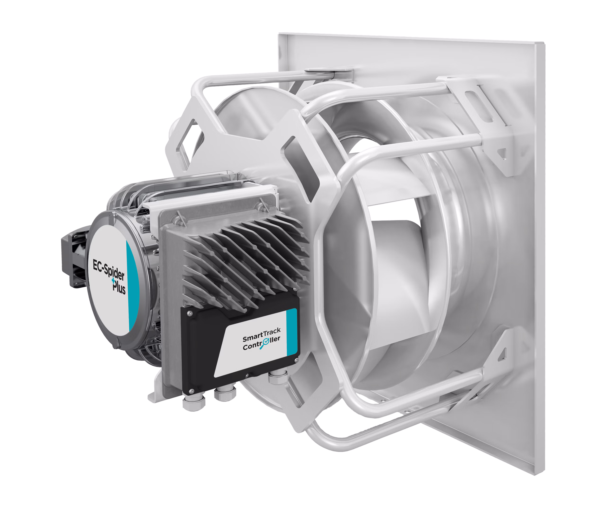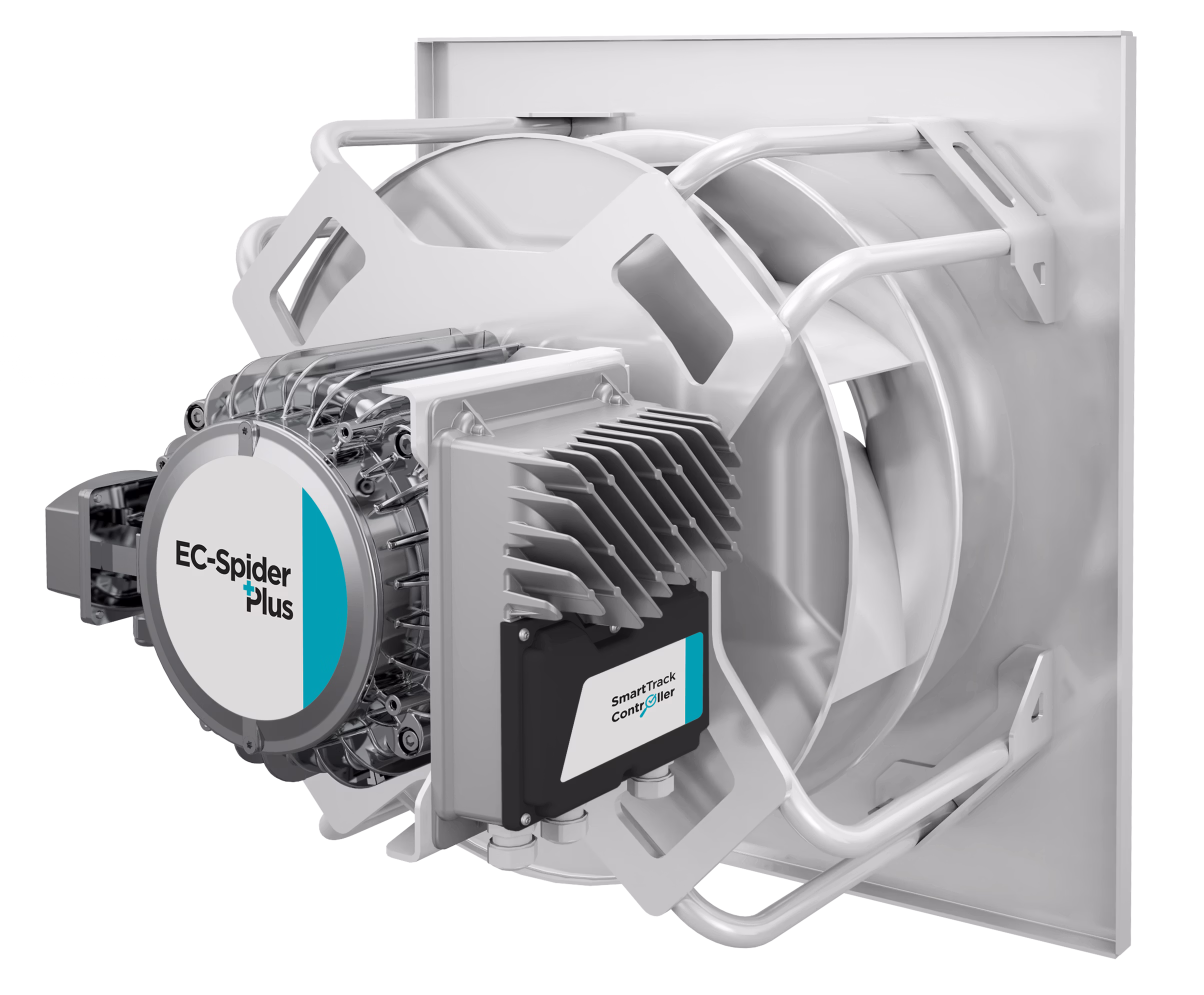 Each EC-Spider Plus fan is equipped with an active, built-in vibration sensor that continuously monitors the rotating assembly. If vibration levels rise beyond safe limits, the SmartTrack Controller automatically slows the fan wheel to prevent potential damage.